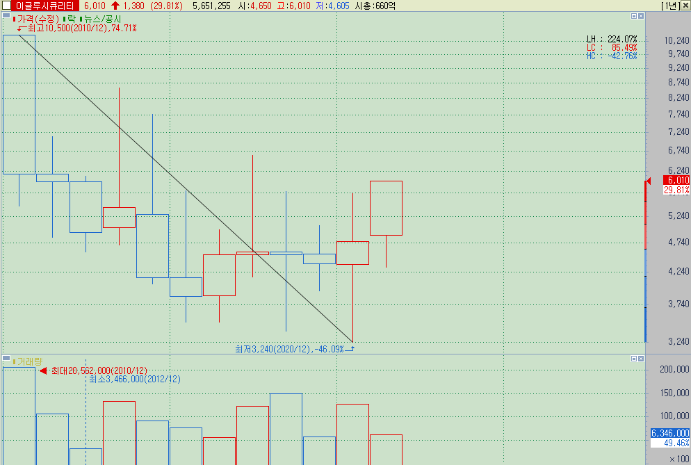 ▲ 개별주로 도달한 상한가이며 실적이 곧 모멘텀이라 장기 우상향은 맞는 상황이지만, 장 막판 상한가에 도달했고 상한가 잔량이 많지 않은 점은 이 종목에 대한 불안요소가 있다는 것을 보여주는 대목. 4500원~4800원 사이의 매물이 최근 3년 중 31%가 넘으며. 바로 위의 5000 초반대까지는 21%가 쌓여있다. 지지라인은 이렇게 확실하게 잡혀있지만, 핸들링에서 전체적으로 꼬리가 달리는 움직임을 보일때가 많기에, 급등이나 급락 당시 보다는 추세 안에서의 매매를 해나갔던 종목이다. 하지만 3일 상한가는 그동안의 흐름과 결을 달리해야 함이 옳다.