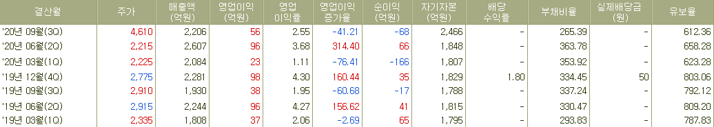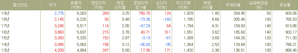 ▲ 부채비율이 약간 높고 실적이 일정치 않은 점은 향후 가격을 잡아나가는 데에 걸림돌이 될 수 있으므로 또한 주의를 요한다.