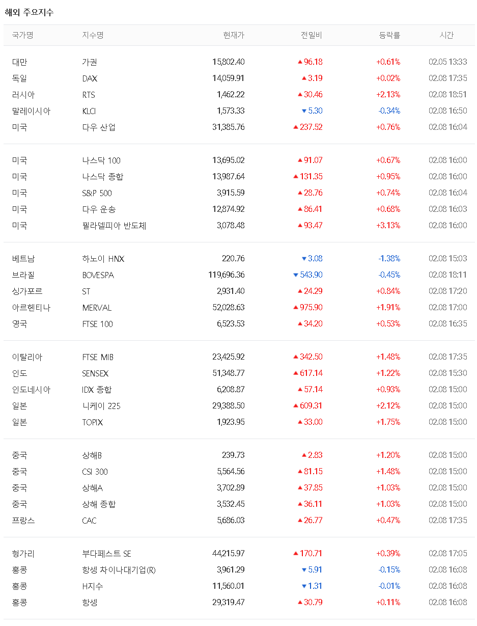 2021/02/08 - [WhaleStockLab/Schedule] - 오늘의 증시일정 : 국내증시 미국증시 달러환율 금시세 금리 원유 선물