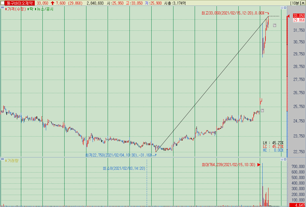▲ 2021-02-15 주당 2주 배정 무상증자 결정에 상한가
