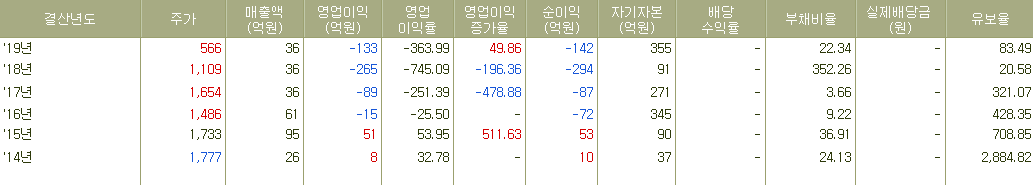 (2016년의 영업손실은 회사의 합병등기일이 속하는 사업연도로 상장규정 제28조 14항에 의거 영업손실에 의한 관리종목 지정사유에 기산하지 않습니다.)