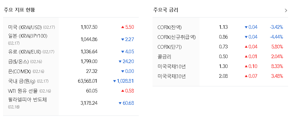 2021/02/17 - [WhaleStockLab/Schedule] - 오늘의 증시일정 : 국내증시 미국증시 달러환율 금시세 금리 원유 선물