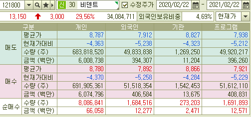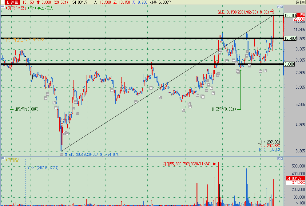 ▲ 2021-02-22 빗썸 관련 최대 수혜 전망 등에 상한가