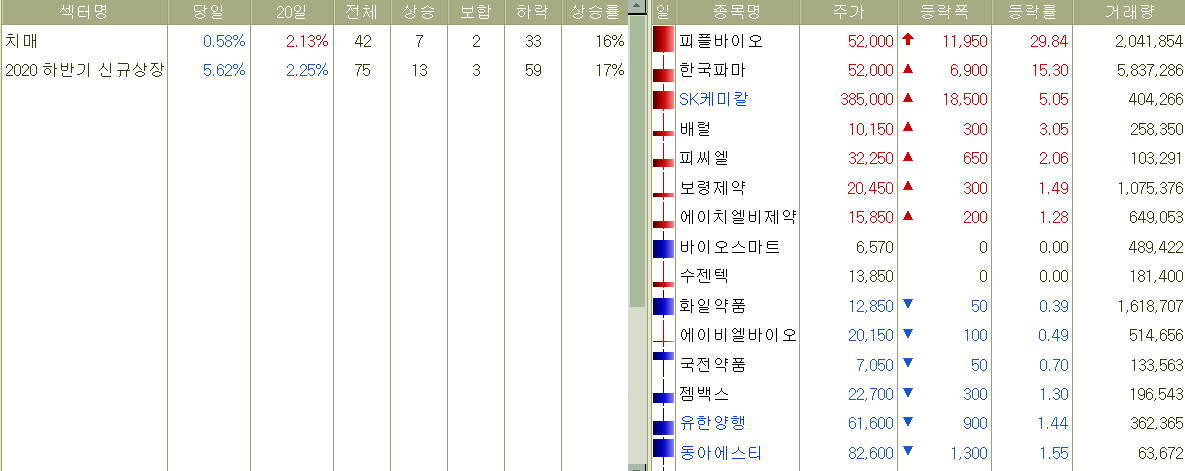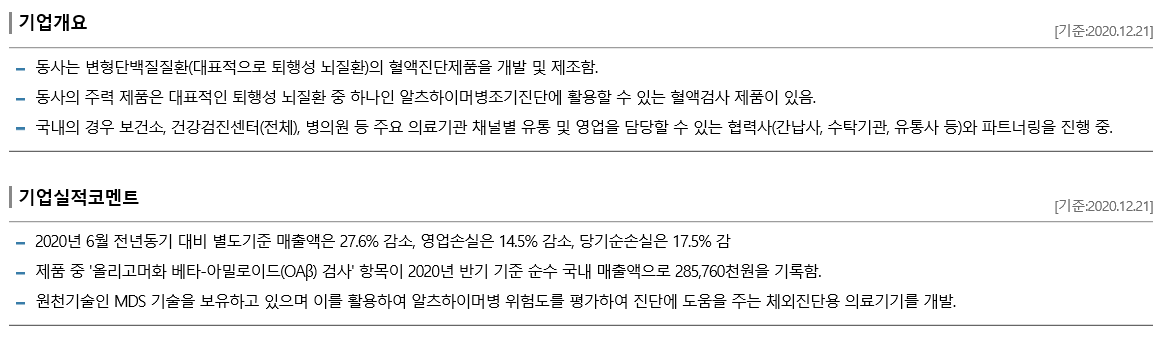 ▲ 치매 관련주, 2020 하반기 신규상장주.