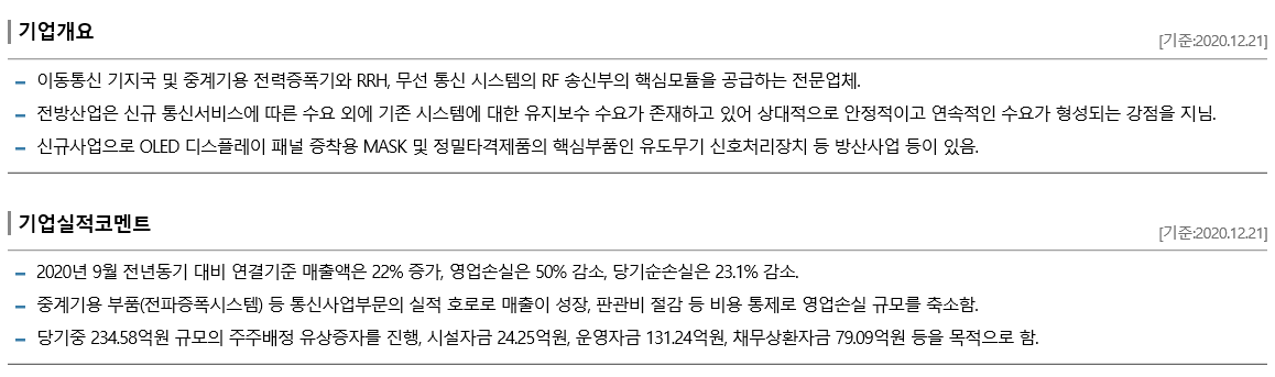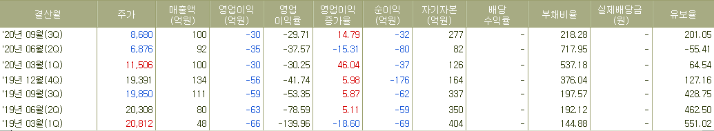 ▷20년 연결기준 매출액 282.09억원(전년대비 +19.5%), 영업손실 108.15억원(전년대비 적자지속), 순손실 248.05억원(전년대비 적자지속).