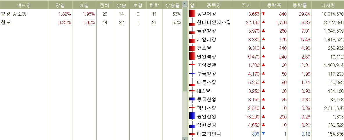 ▲ 철강 중소형주, 철도주.