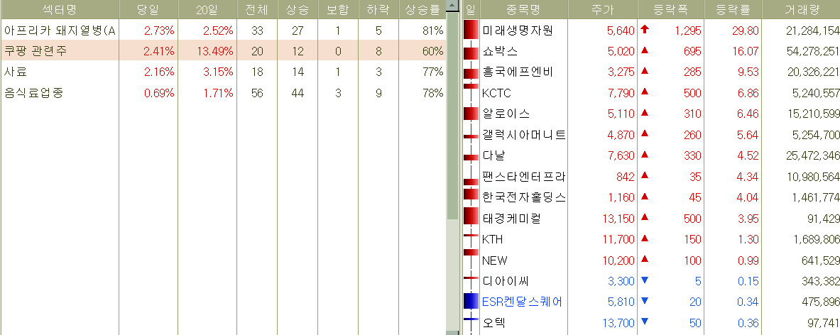▲ 사료 관련주, 음식료 업종 관련주, 쿠팡 관련주.