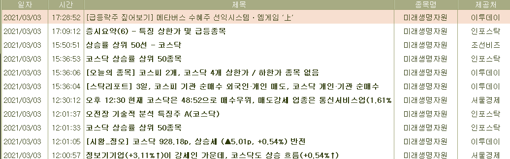 2021/03/03 - [WhaleStockLab/Schedule] - 오늘의 증시일정 : 국내증시 미국증시 달러환율 금시세 금리 원유 선물