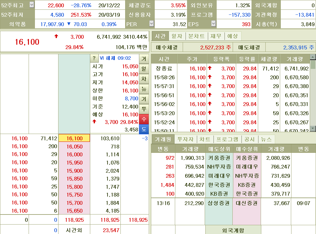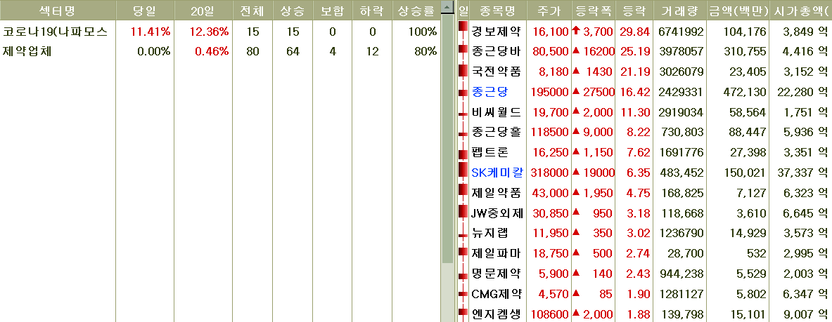 2020-07-23 코로나19 백신 기대감 지속 등에 제약업체 테마 상승 속 급등