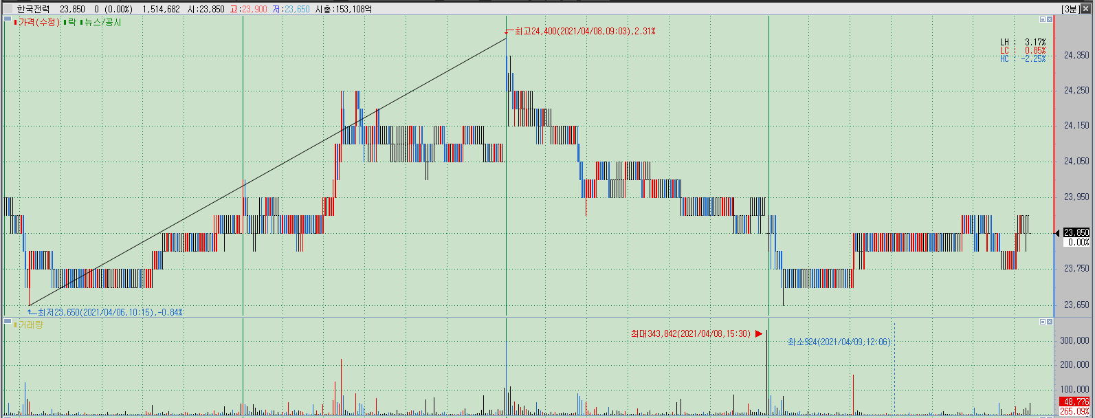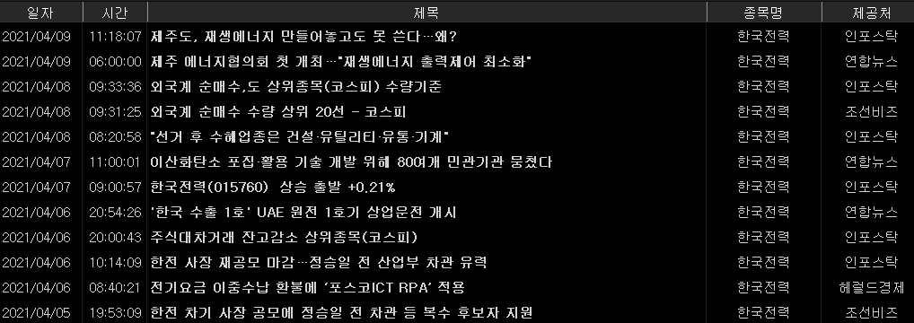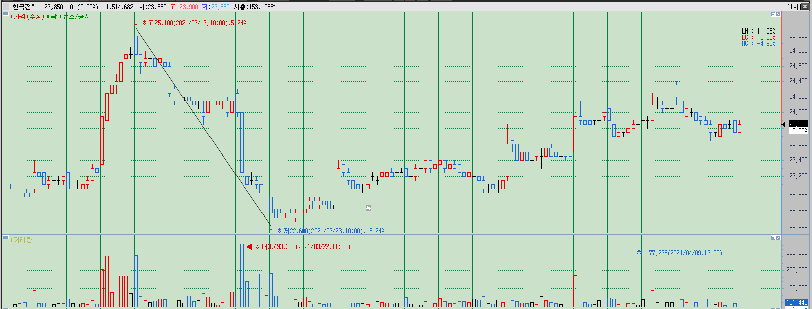 2021-03-22 2분기 전기요금 인상 유보 소식에 하락