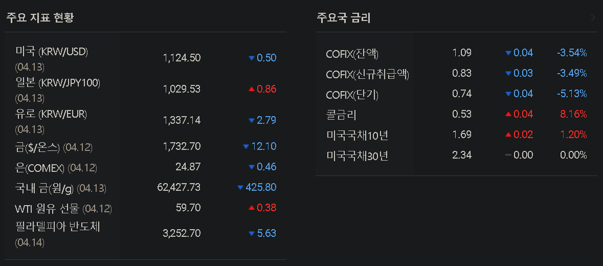 2021.04.13 - [WhaleStockLab/Schedule] - 오늘의 증시일정 : 국내증시 미국증시 달러환율 금시세 금리 원유 선물