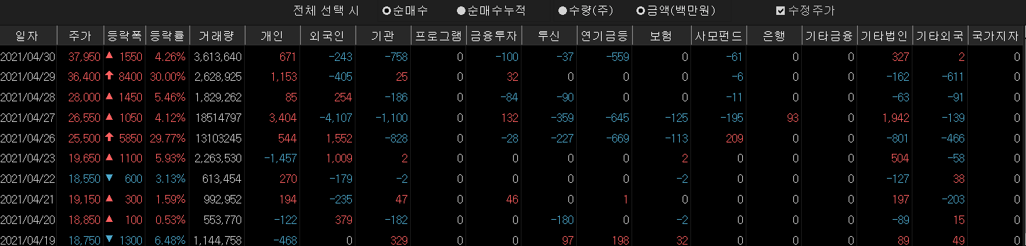 ▲ 2021-04-26 1분기 실적 호조에 상한가
