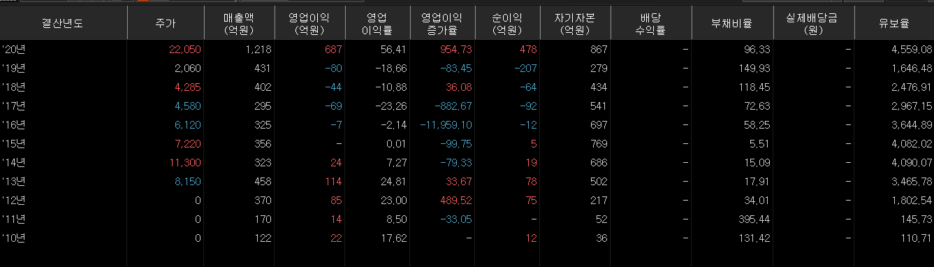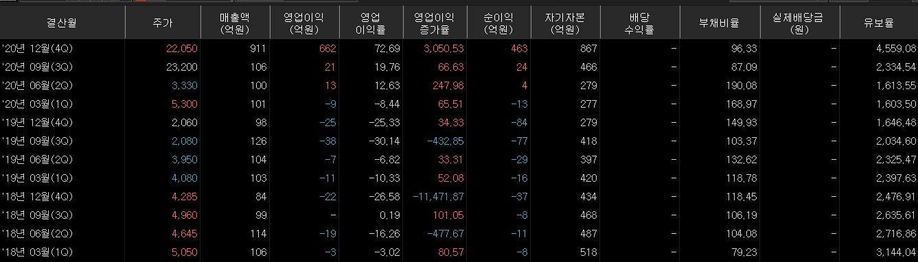 ▶ 이익이 마이너스 상태였던 이전과는 달리 20년에는 돌림을 이루어냈으며 이 실적의 돌림이 21년 1분기 실적발표까지 이어지면서 흐름 자체는 좋은 상황.