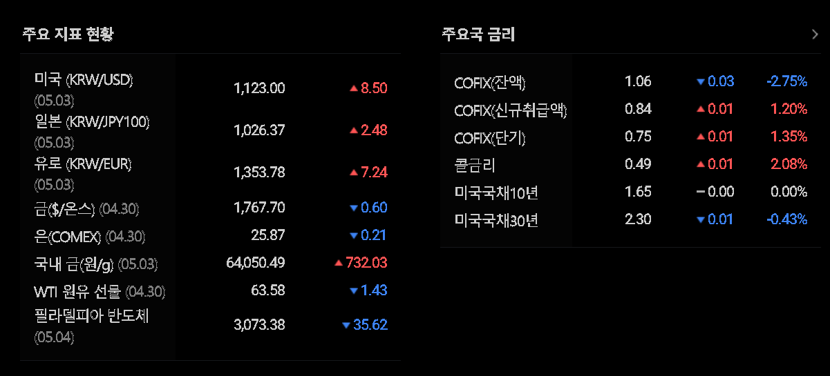 2021.05.01 - [WhaleStockLab/Schedule] - 오늘의 증시일정 : 국내증시 미국증시 달러환율 금시세 금리 원유 선물