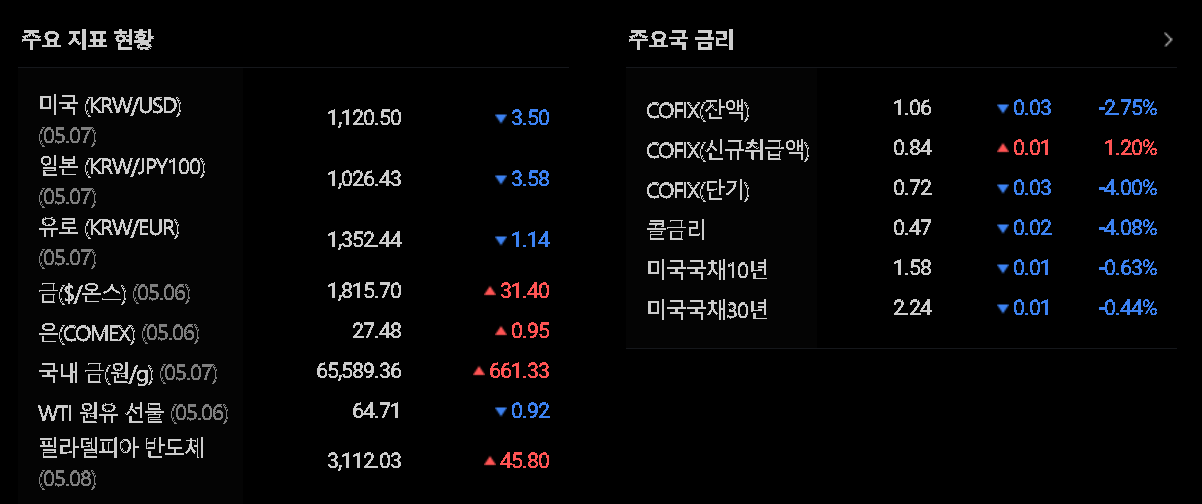 2021.05.07 - [WhaleStockLab/Schedule] - 오늘의 증시일정 : 국내증시 미국증시 달러환율 금시세 금리 원유 선물