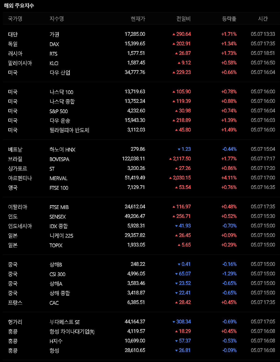 | 오늘의 증시일정 : 국내증시 미국증시 달러환율 금시세 금리 원유 선물 (0) | 2021.05.07 |