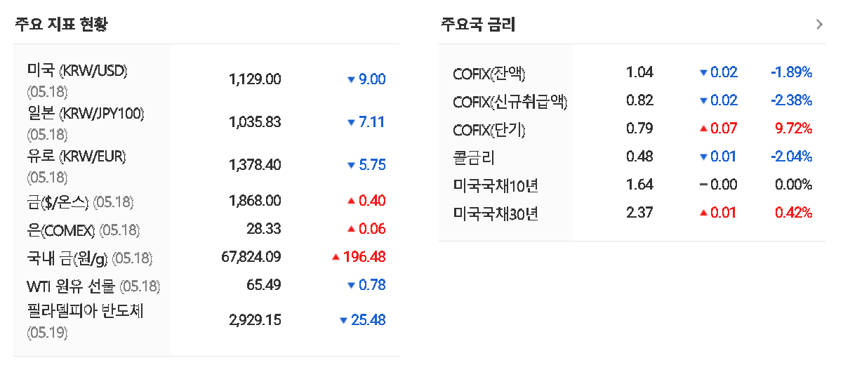 2021.05.18 - [WhaleStockLab/Schedule] - 오늘의 증시일정 : 국내증시 미국증시 달러환율 금시세 금리 원유 선물