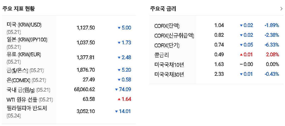 | 오늘의 증시일정 : 국내증시 미국증시 달러환율 금시세 금리 원유 선물 (0) | 2021.05.28 |