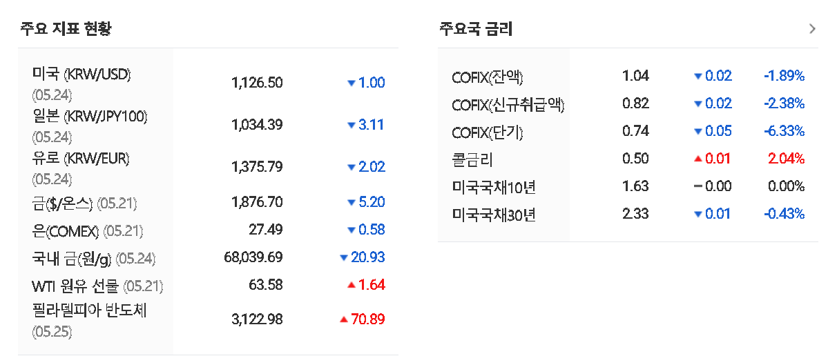 2021.05.24 - [WhaleStockLab/Schedule] - 오늘의 증시일정 : 국내증시 미국증시 달러환율 금시세 금리 원유 선물