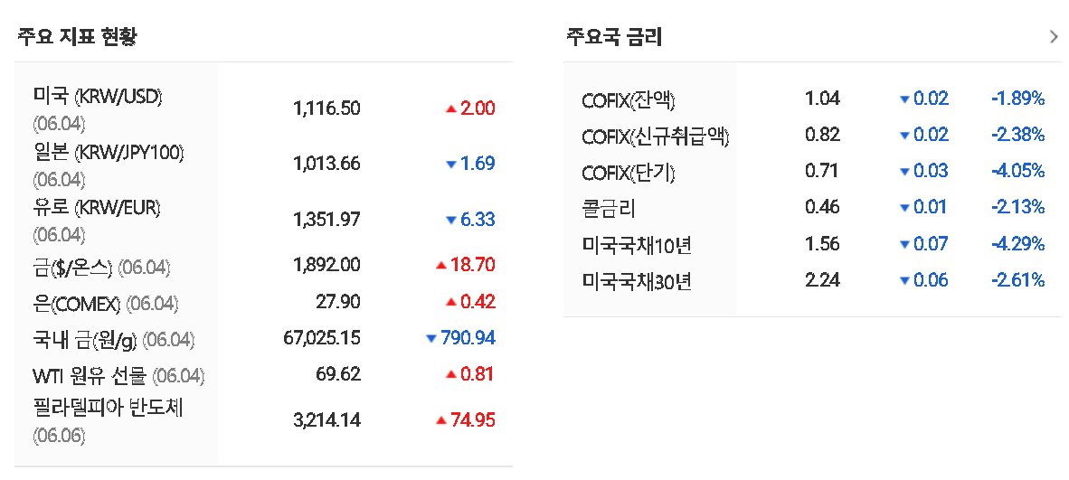 2021.06.06 - [WhaleStockLab/Schedule] - 오늘의 증시일정 : 국내증시 미국증시 달러환율 금시세 금리 원유 선물