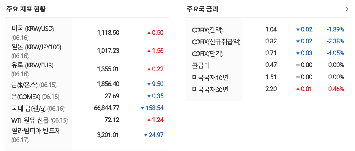2021.06.14 - [WhaleStockLab/Schedule] - 오늘의 증시일정 : 국내증시 미국증시 달러환율 금시세 금리 원유 선물