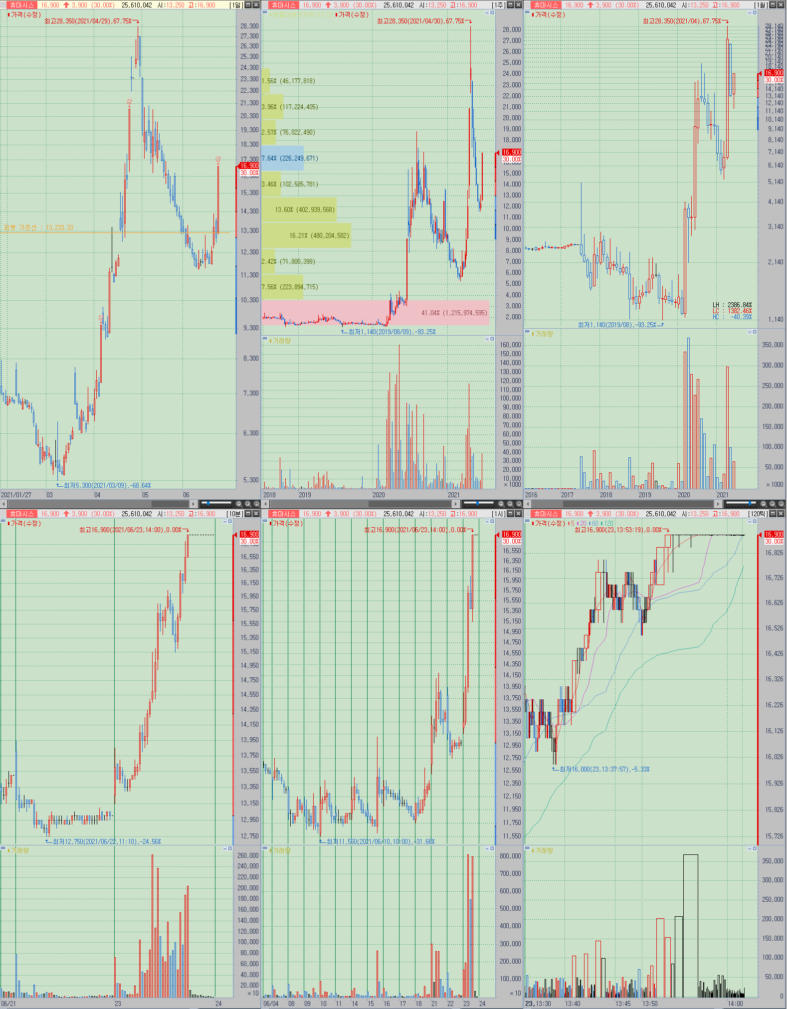 ▲ 2021-06-23 상한가-코로나19 확진자 증가 및 델타 변이 우려 지속 등에 코로나19(진단/치료제/백신 개발 등) 테마 상승 속 상한가-1일 연속
