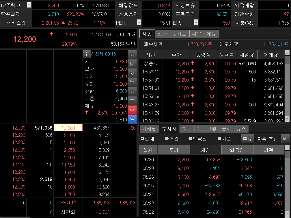 ▲ 2021-06-30 상한가-정치/인맥(이재명) 관련주로 시장에서 부각되며 상한가-1일 연속