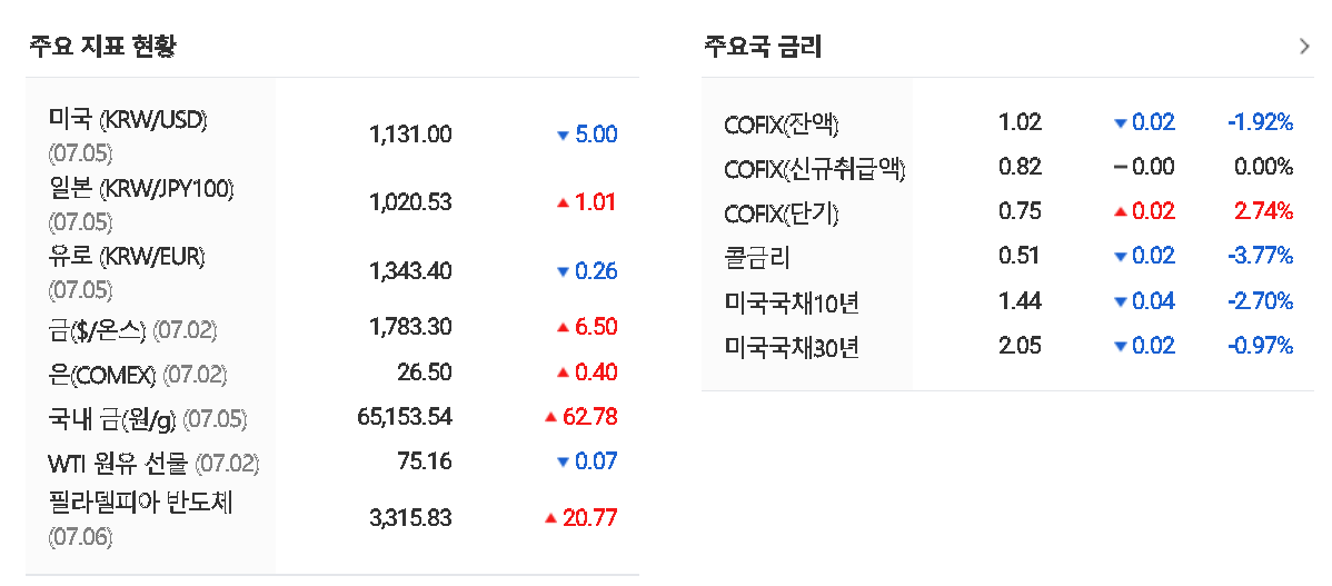 2021.07.05 - [WhaleStockLab/Schedule] - 오늘의 증시일정 : 국내증시 미국증시 달러환율 금시세 금리 원유 선물