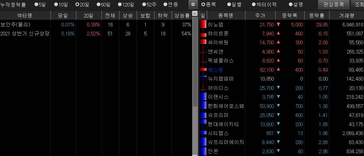 ▲ [보안주(물리)] [2021 상반기 신규상장] 관련주