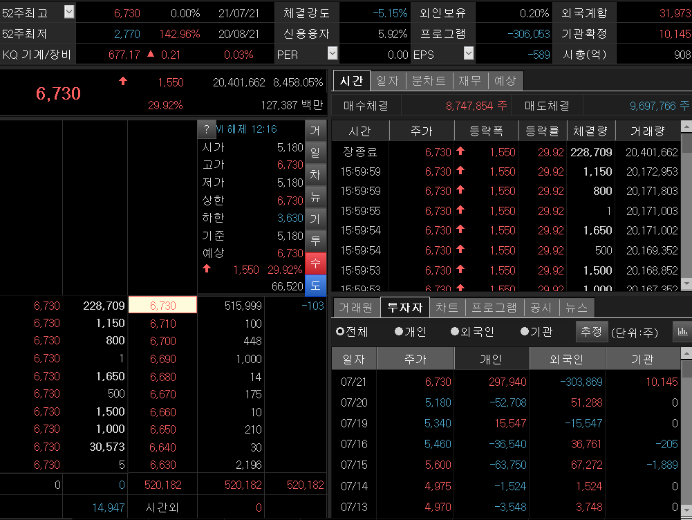 ▲ 2021-07-21 상한가-정치/인맥(최재형) 관련주로 시장에서 부각되며 상한가-1일 연속