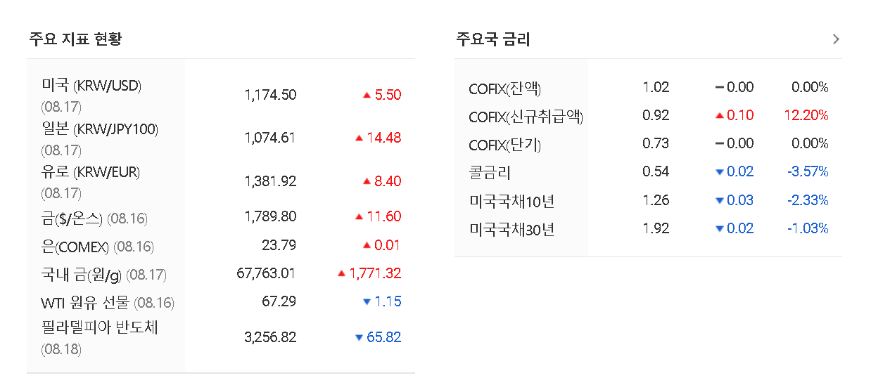 2021.08.17 - [WhaleStockLab/Schedule] - 오늘의 증시일정 : 국내증시 미국증시 달러환율 금시세 금리 원유 선물