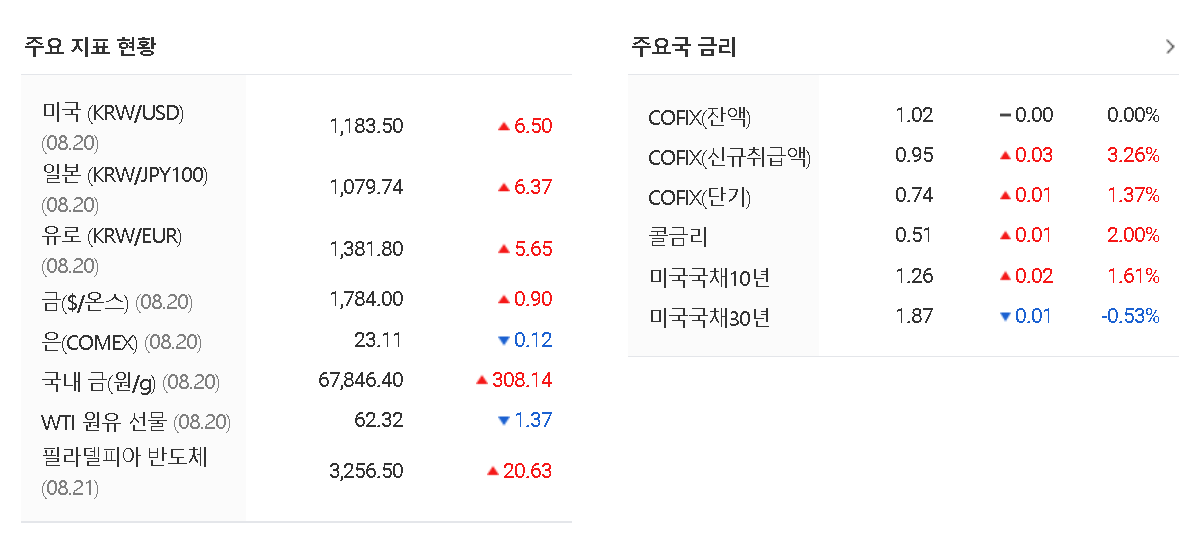 2021.08.20 - [WhaleStockLab/Schedule] - 오늘의 증시일정 : 국내증시 미국증시 달러환율 금시세 금리 원유 선물