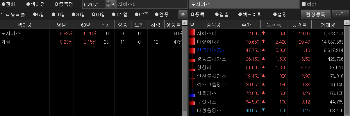 ▲ 도시가스, 겨울 관련주.