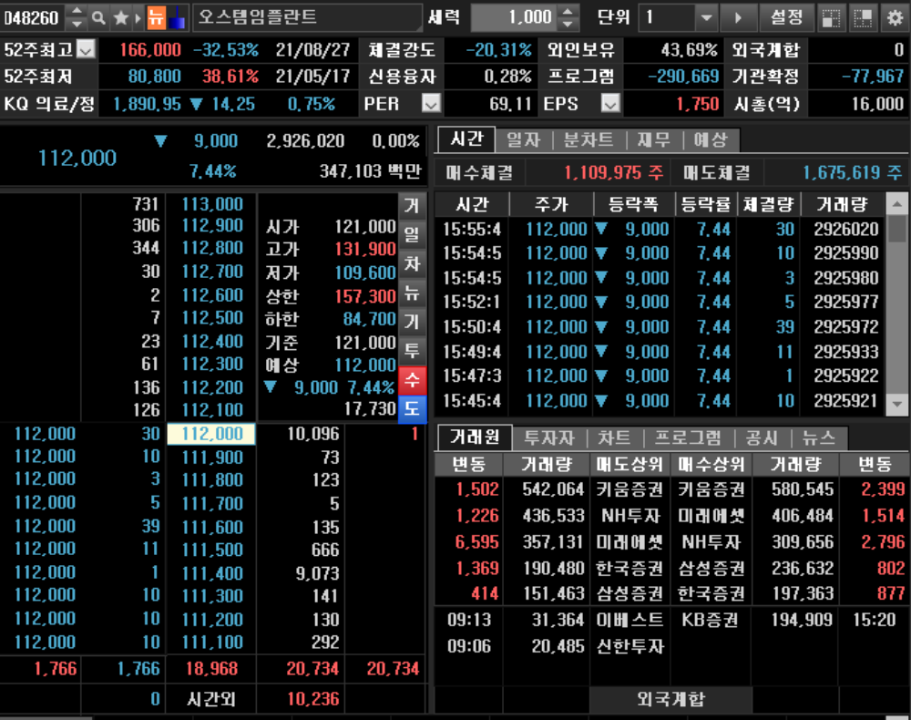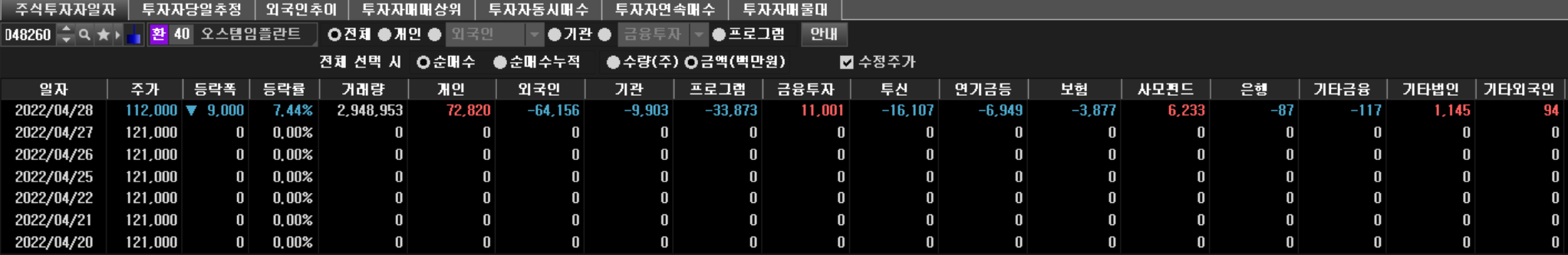 오스템임플란트 048260 거래 재개일(2022.04.28.목) 흐름 체크