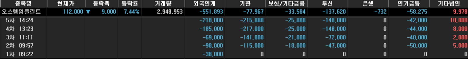 ▲ 하지만 여기에서 다음날 이후 우려되는 포인트가 보였는데, 바로 외국인의 오후장 물량 드랍이 그것이다. 아래의 사진을 참고하자.