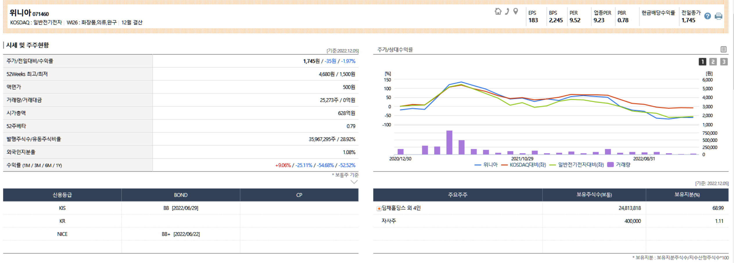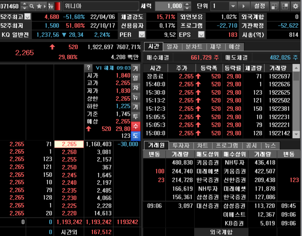 위니아 (071460) 주가 상한가 이유와 전망을 알려드립니다.
