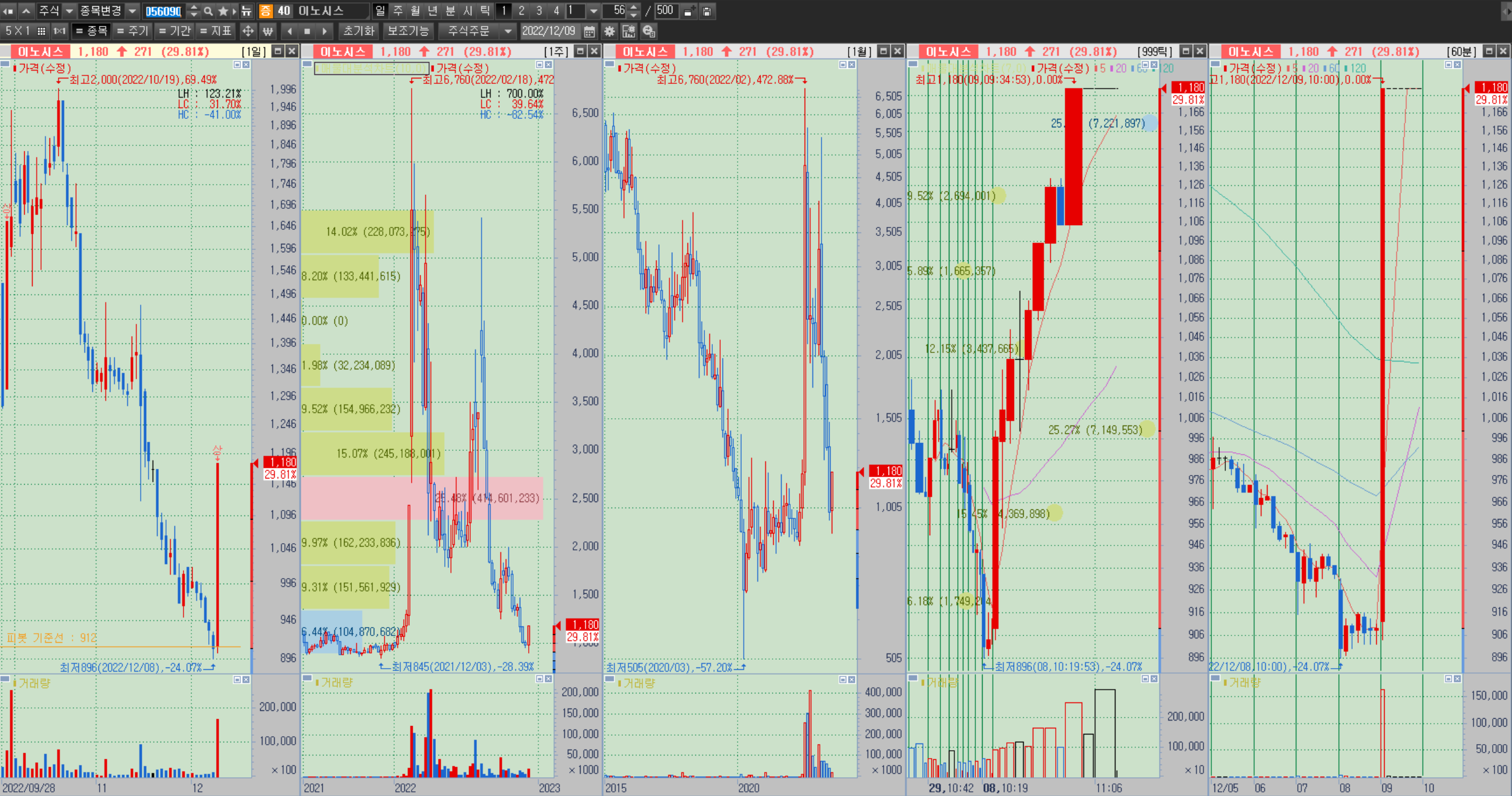 ▲ 특히, 12월 9일 상한가는 8월 고점부터 12월 8일 저점 까지는 -84.11%의 하락폭을 보이던 상황에 만나게 된 호재였다.