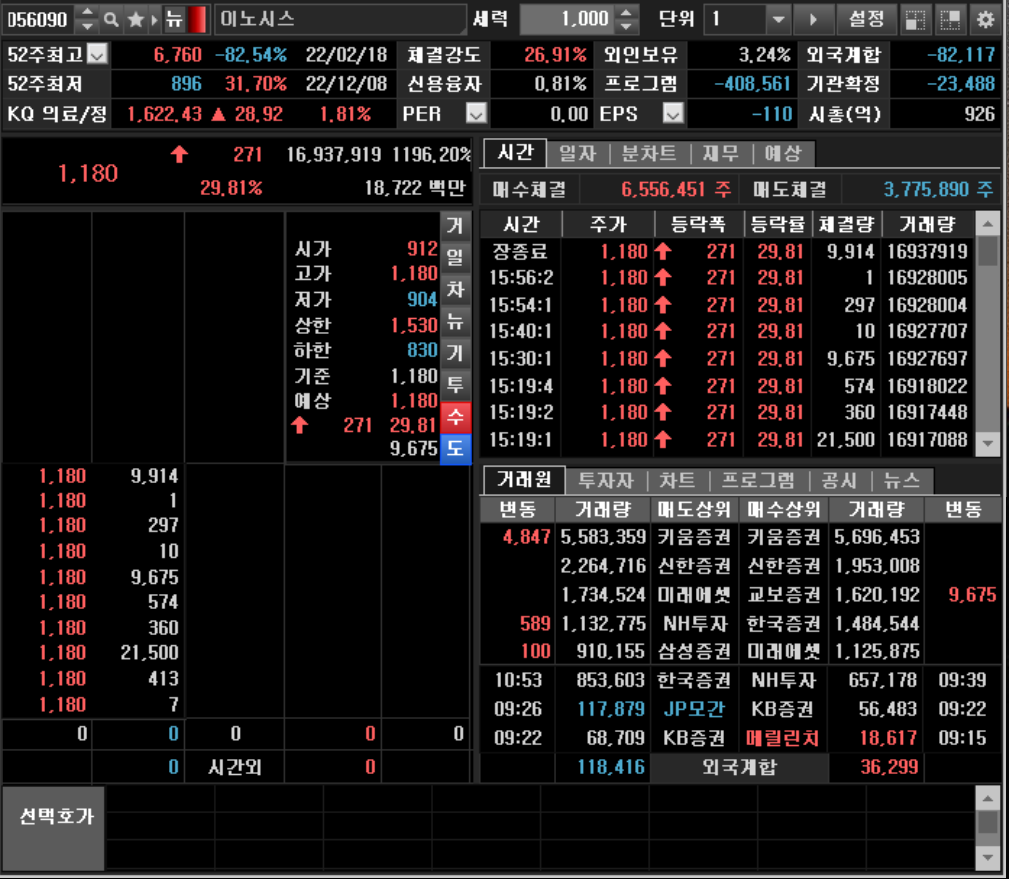 이노시스 056090 주가 상한가 이유와 전망을 알려드립니다.