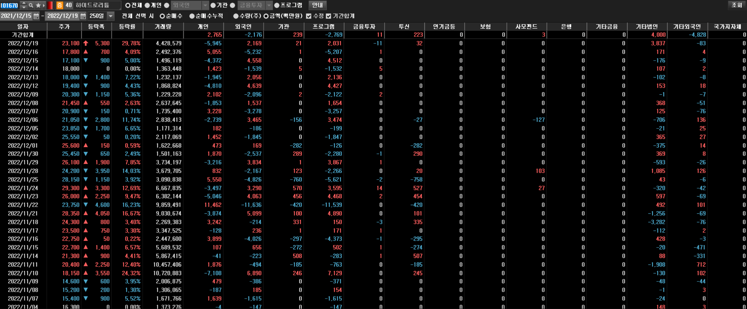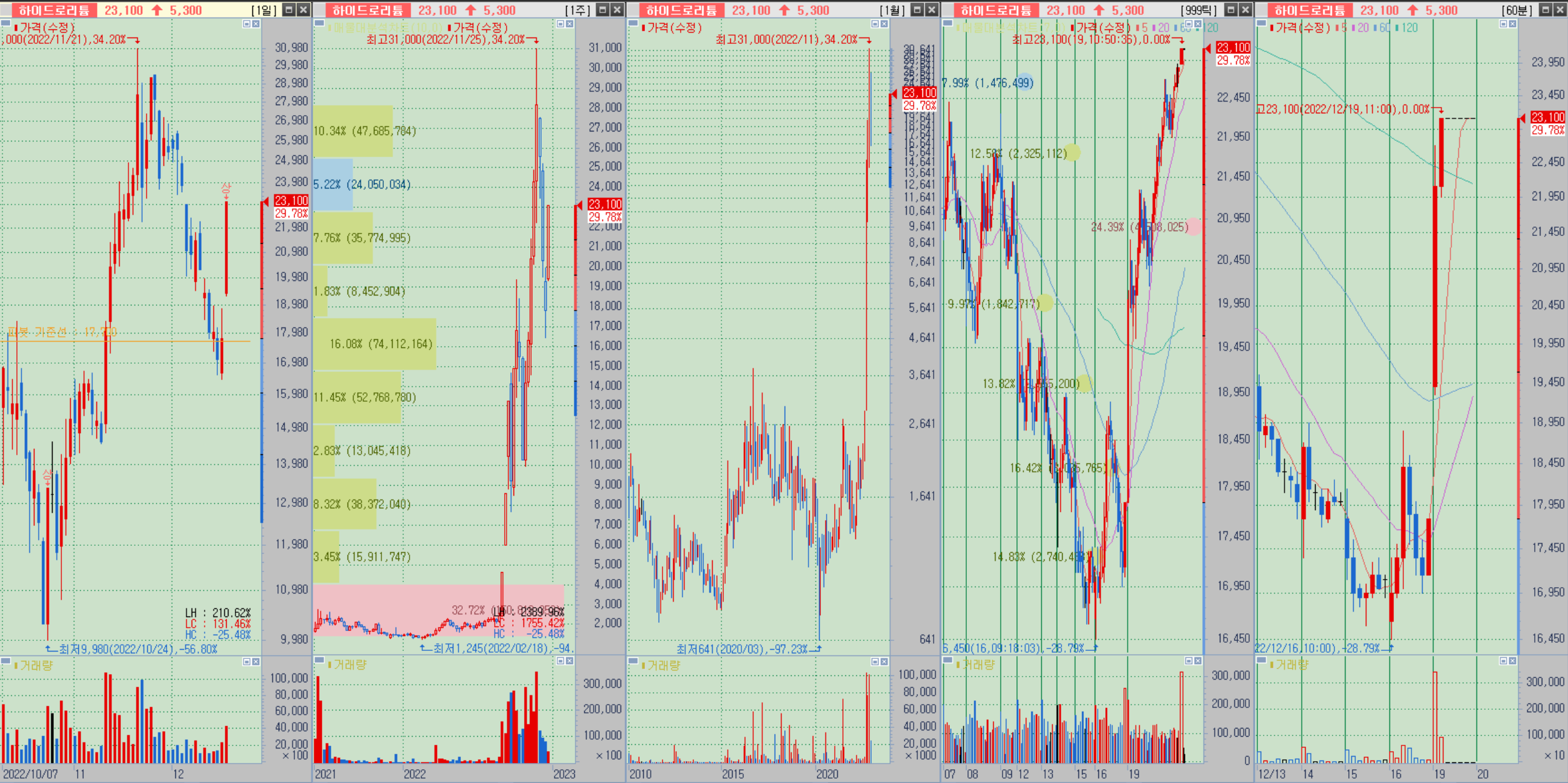 会社の対外環境により、2022年1月に1000ウォン台に留まった銘柄は、2022年11月に3万1000ウォンまで上昇した。