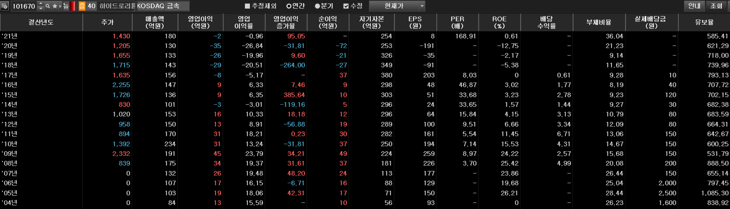 ▲ 하지만, '하이드로리튬 101670'의 내부 상황은 2022년을 포함하여 6년 연속 적자가 확정되었다.